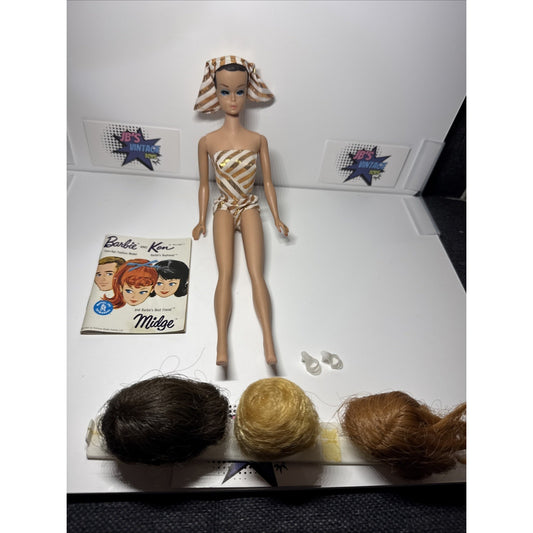 Vintage 1963 Barbie Fashion Queen Doll W/ Swimsuit & Headpiece, 3 Wigs & Shoes