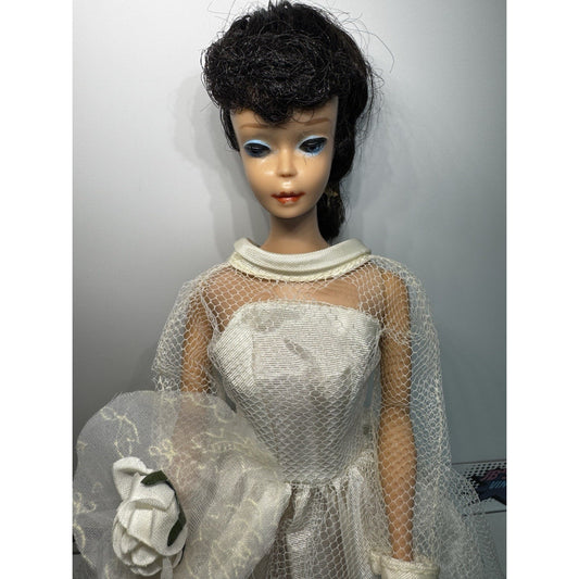 Vintage Barbie Doll #5 Ponytail Brunette In Unknown Branded Wedding Dress